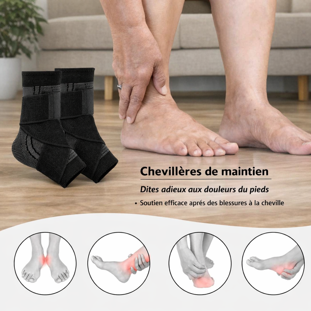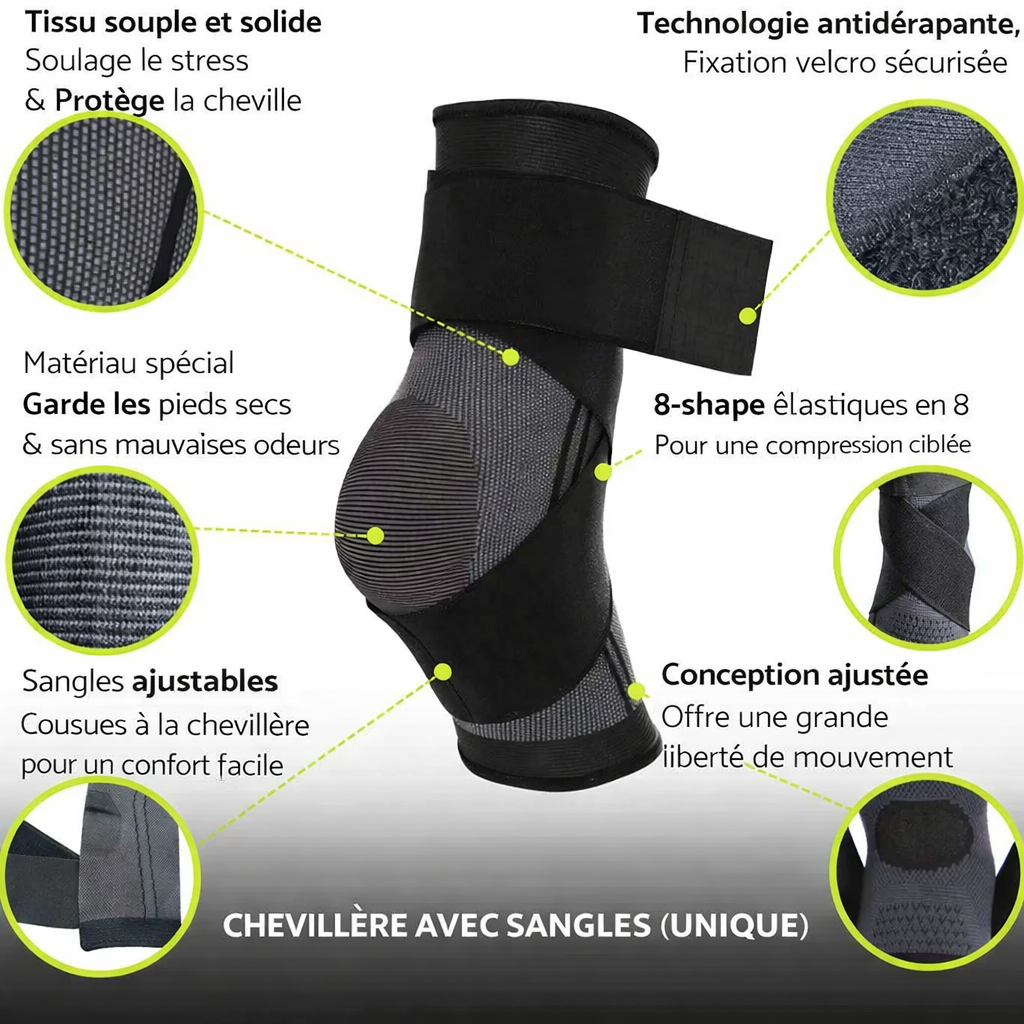Chevillère de compression avec strap de maintien.